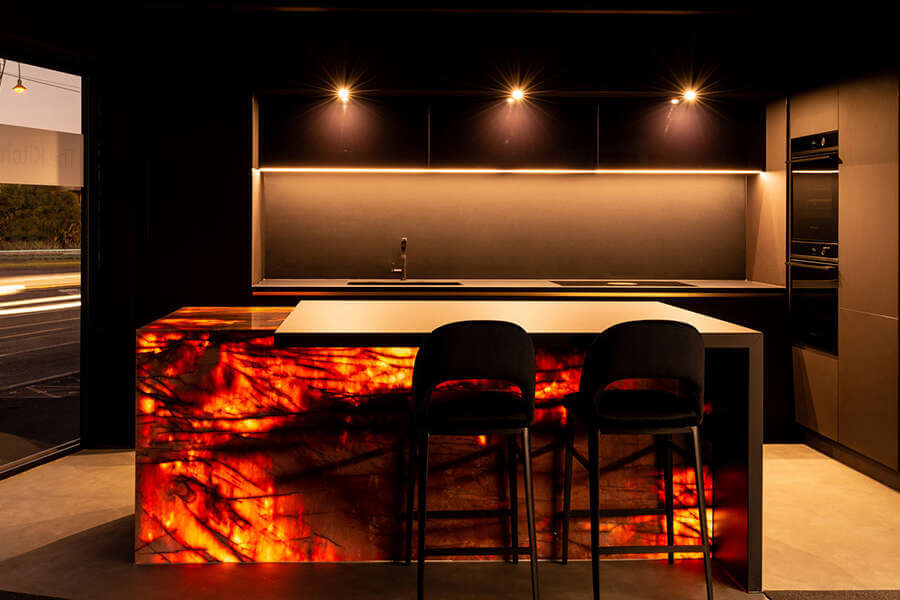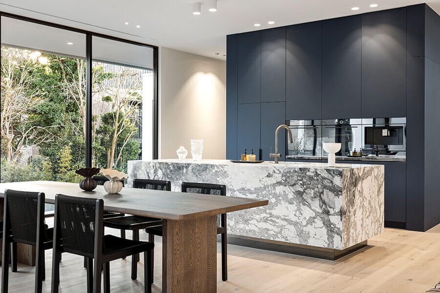 Warner in our Essendon showroom is a luxurious kitchen design that embodies elegance, functionality, and sophistication.