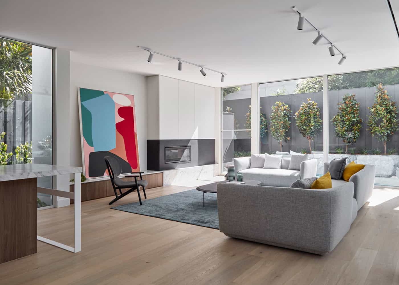 Upstairs, there are a further two bedrooms, each with stunningly appointed ensuites, plus a communal workspace with ample amounts of natural light. Other features selected by TKDC include AirSmart ducted heating and air-conditioning, engineered oak timber floors, Italian-made furniture from Hub Furniture, double-glazed windows, and feature lighting by LightsLightsLights.