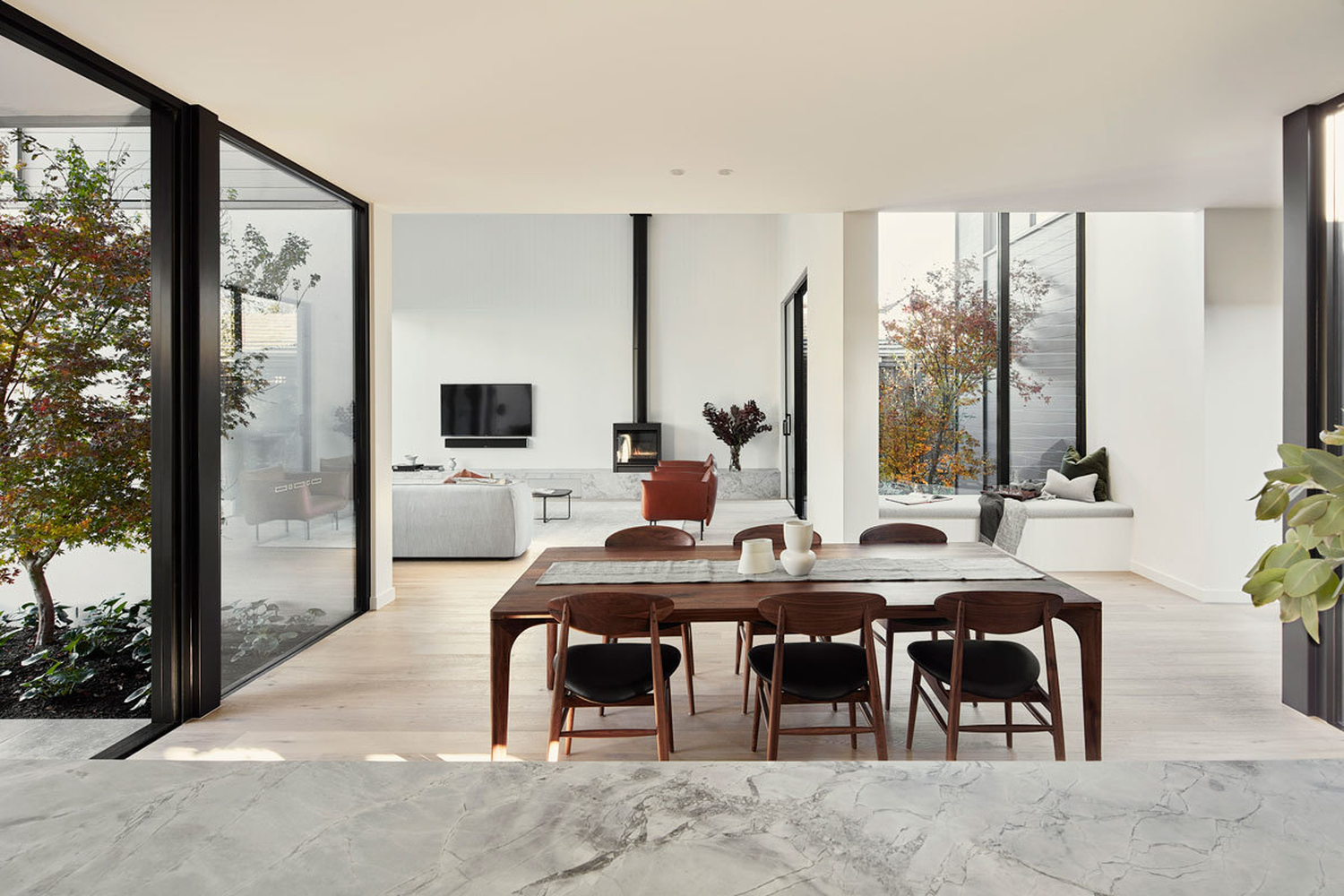 Once you enter through the full height custom timber door, each room is an oasis, designed to exploit the abundance of natural light. From the front sitting room with north facing windows greeting a garden view axis, to the internal atrium flooded with morning light, there is no shortage of relaxing breakaway zones.