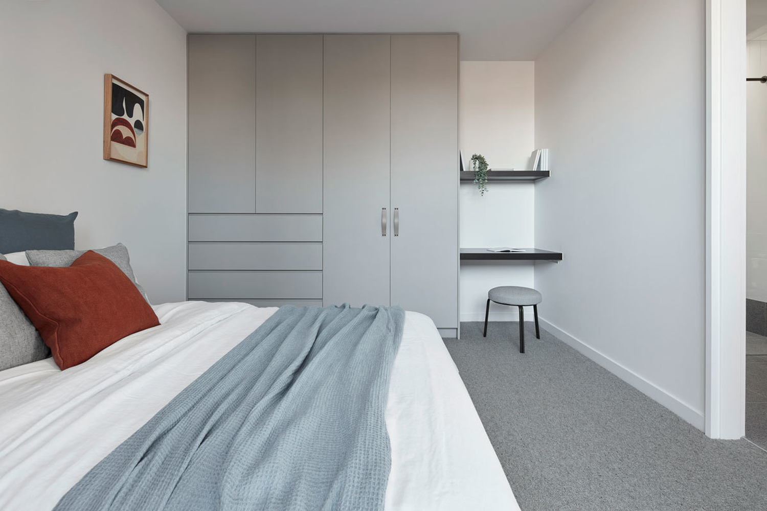 The master bedroom is a sprawling work of art with its ground floor positioning, allowing a private courtyard for quiet moments of contemplation. Complete with an expansive walk-in robe by TKDC and generous ensuite with his and hers sinks in a custom Zuster vanity, it is a masterclass in luxury. Upstairs, you will find a further three bedrooms, each beautifully appointed with light filled ensuites. Every need has been accounted for, with quiet enclaves such as a built-in study area and rumpus room.