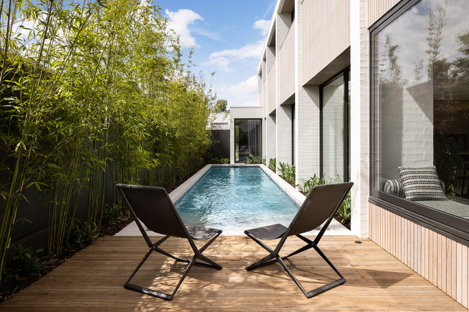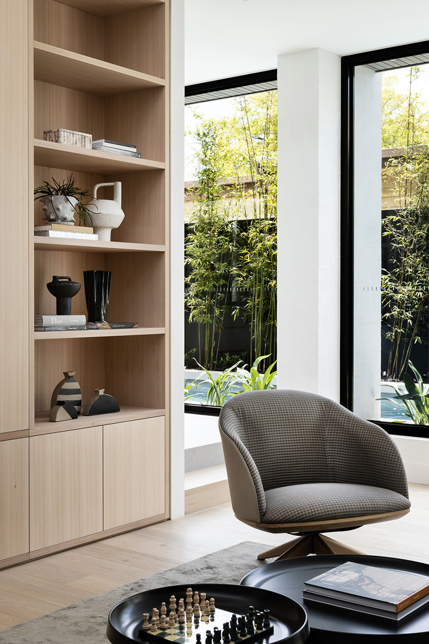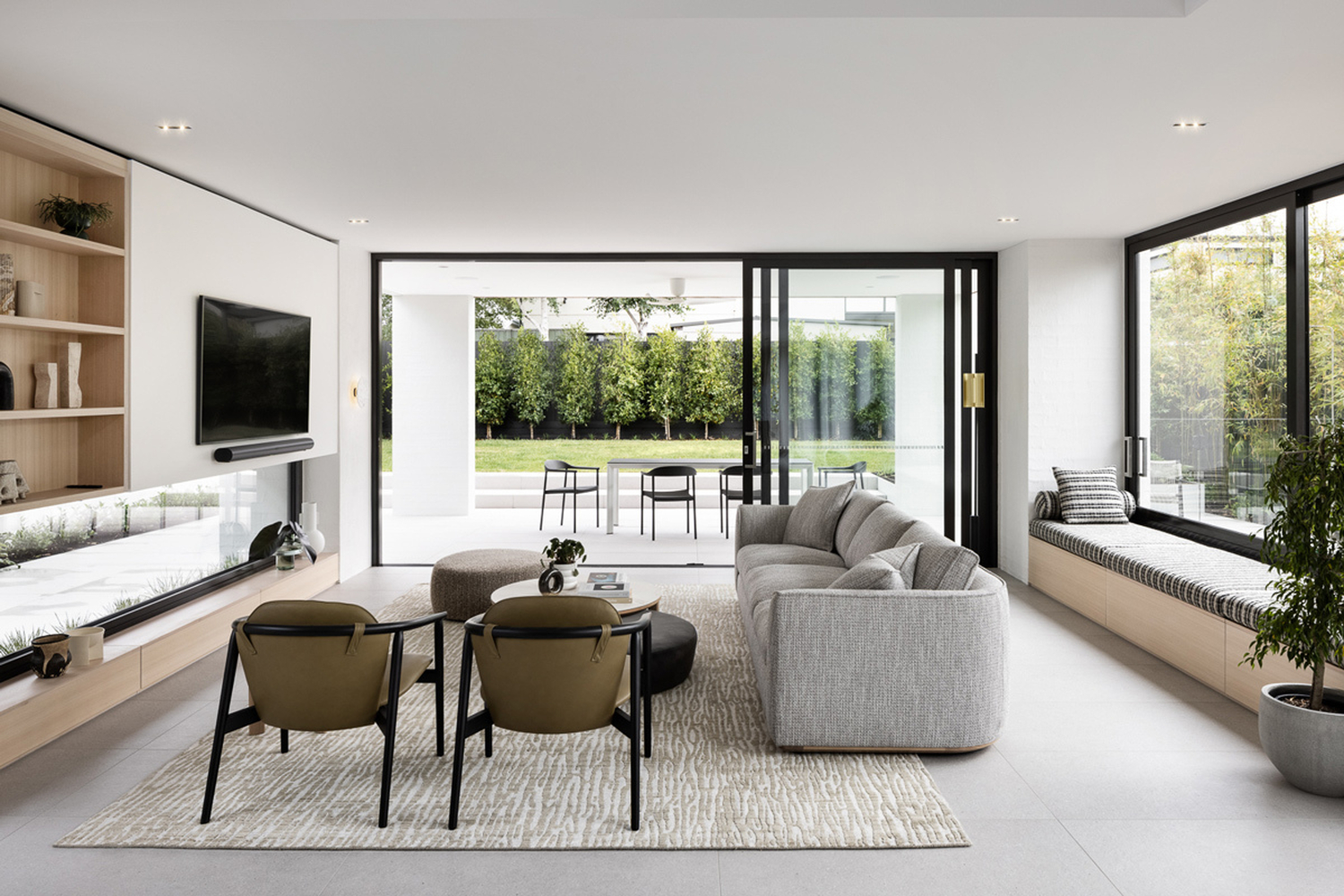 Once you enter Linacre, you are immediately taken by the abundance of natural light and the view through to the 14m long pool. Soaring ceilings and creative nooks lead you through to the casual sitting area that features in-built TKDC storage cabinetry.