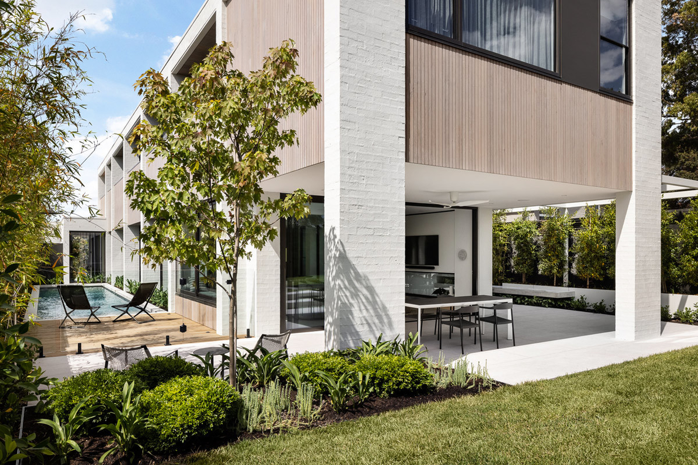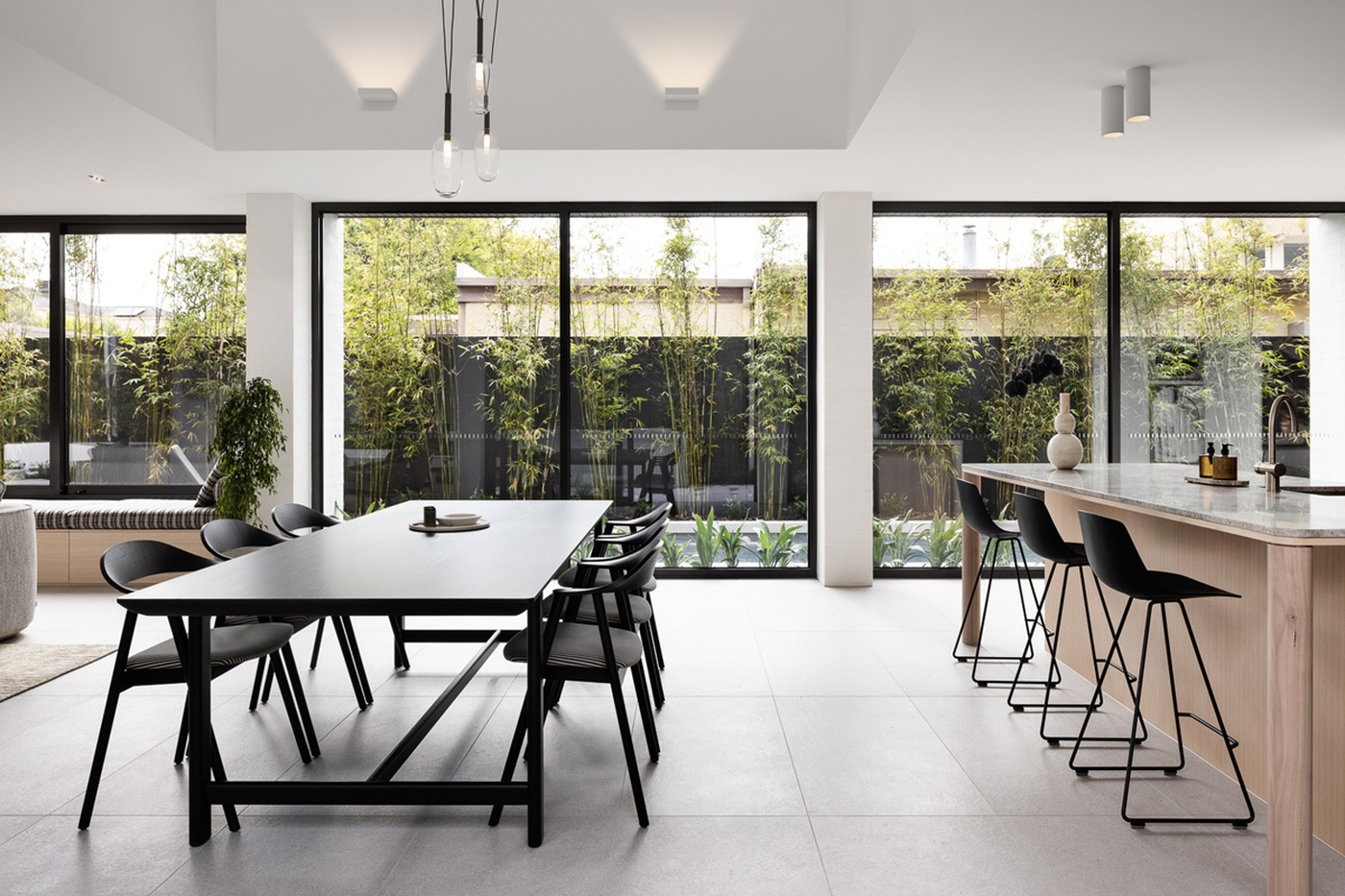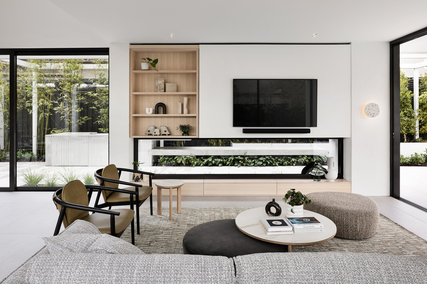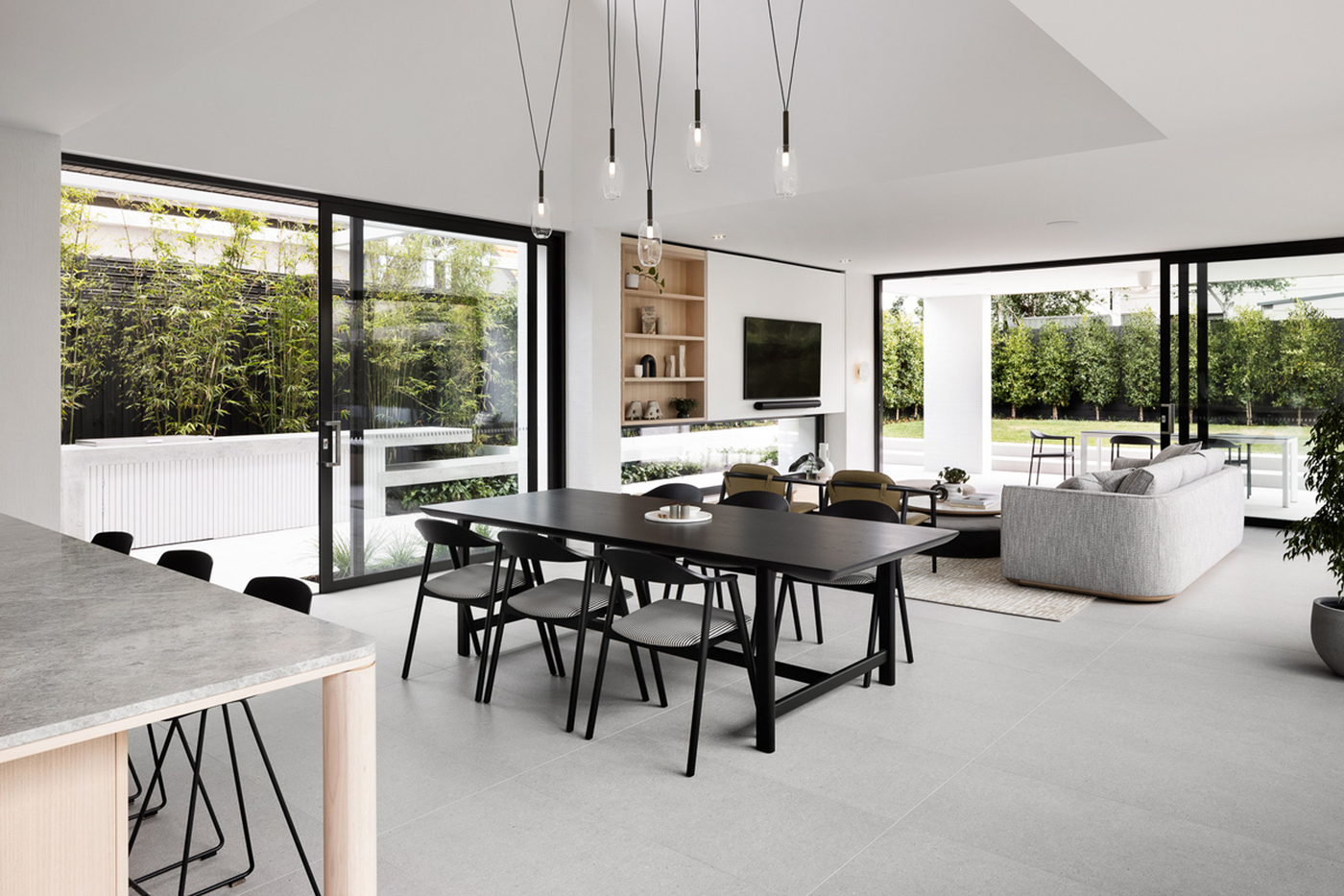 Once you enter Linacre, you are immediately taken by the abundance of natural light and the view through to the 14m long pool. Soaring ceilings and creative nooks lead you through to the casual sitting area that features in-built TKDC storage cabinetry.